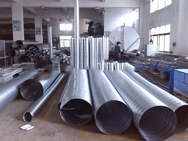 (1) 送風(fēng),包括通氣,如送鮮風(fēng)和排氣,這個范圍很廣,如工廠車間,生產(chǎn)場地空氣,由于有害氣體產(chǎn)生需要排出室外,又需要把室外空氣輸送至室內(nèi)。這時就要使用流量大而壓力小的空氣輸送管道,螺旋風(fēng)管就最適用,一般情況下使用鍍鋅鐵管,有腐蝕性及特別潮濕場所使用不銹鋼管。